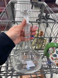Pressed Glass Diamond Point Decanter with Matching Stopper