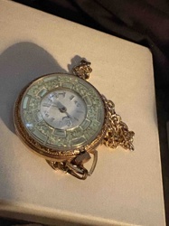 Vintage Gold-Tone Pendant Watch with Mosaic Dial Surround