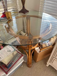 Rattan and Glass Circular Pedestal Dining Table