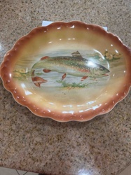 Antique Hand-Painted Scalloped Fish Platter