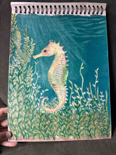 Seahorse Illustration in Spiral-Bound Sketchbook
