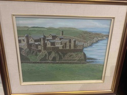 Framed Oil on Canvas of a Coastal Citadel