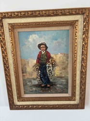 Oil Painting of a Young Garlic Seller