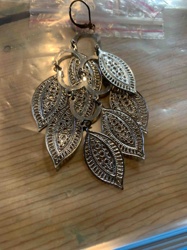 Silver-Tone Layered Filigree Leaf Chandelier Earring