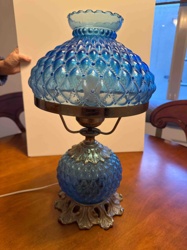 Fenton Blue Opalescent Pineapple or Hobnail Gone With The Wind Style Lamp