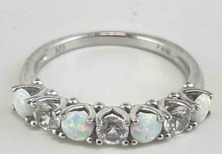Sterling Silver Simulated Opal and Cubic Zirconia Half-Eternity Band