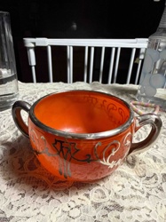 Art Deco Orange Glass Sugar Bowl with Silver Overlay