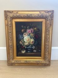 Floral Still Life Oil Painting with Ornate Frame (Signed 'Pascucci')