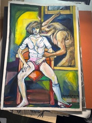 Original Surrealist Figural Canvas Painting