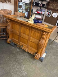 Ornate Hand-Carved Oak Home Bar with Lion Columns