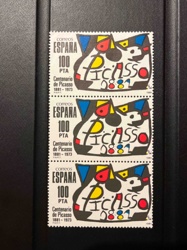 Vertical Strip of Three 1981 Spanish Pablo Picasso Centenary Postage Stamps