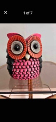 Stylized Hand-Painted Carved Wooden Owl Figurine