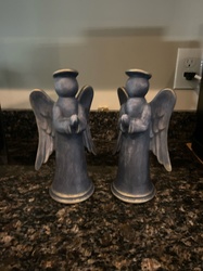 Pair of Folk Art Style Blue Chalkware Angel Figurines