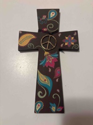 Bohemian Paisley Decorative Wooden Wall Cross with Peace Sign