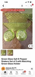Vintage Tiara Glass Exclusive Sandwich Pattern Green Salt and Pepper Shakers with Napkin Holder Set