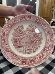 Memory Lane Pink/Red Transferware Soup or Pasta Bowl