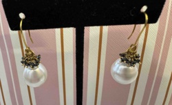 Handmade South Sea Pearl and Black Diamond Bead Earrings