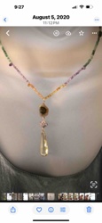 Watermelon Tourmaline and Imperial Topaz Drop Pendant Necklace