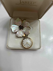 Vintage Carved Mother of Pearl Flower Brooch Watch