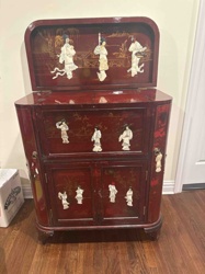 Black Lacquer Oriental Cabinet with Mother-of-Pearl Inlay