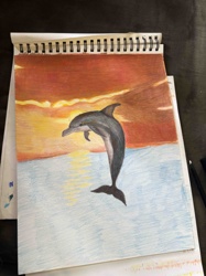 Colored Pencil Drawing of a Jumping Dolphin in a Sketchbook