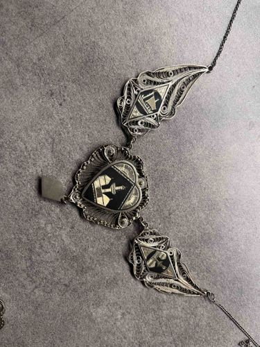 Persian Mina-Kari and Silver Filigree Niello Necklace