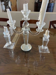 Three-Light Crystal Candelabra with Accompanying Single Candlesticks Set