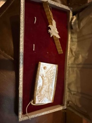 Vintage Carved Mother of Pearl Eagle Belt Buckle and Tie Bar Set