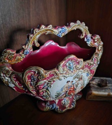 Italian Capodimonte Style Hand-Painted Porcelain Basket