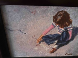 Impressionistic Oil Painting of a Young Girl Writing in Chalk