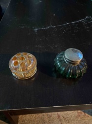 Victorian Era Pressed Glass Inkwell with Flower Frog Insert