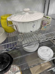 White Fluted Stoneware Casserole Dish with Chrome-Plated Wire Rack