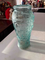 Turquoise Blue Glass Pressed Flower Pitcher