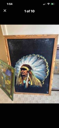 Vintage Black Velvet Painting of a Native American Chief