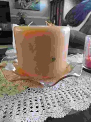 Large Three-Wick Square Pillar Candle on Ruffled Glass Pedestal
