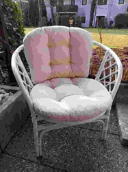 Vintage White Painted Rattan Tub Chair with Tufted Cushions