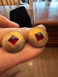 Vintage Circular Brass and Red Cabochon Inset Earrings
