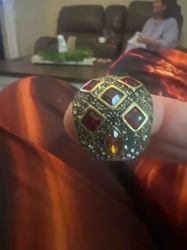 Vintage-Style Gilt Metal Cocktails Ring with Faceted Red and Amber Stones