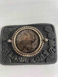 Vintage MAFCO Las Vegas Belt Buckle with 1889 Morgan Silver Dollar Replica