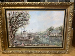 Framed 3D Bas-Relief Diorama of a Paddle Steamer River Scene