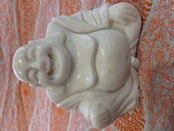 Carved White Marble Laughing Buddha (Budai) Figurine