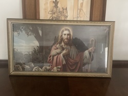 Vintage Framed Lithograph of The Good Shepherd