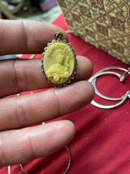 Yellow Resin/Amber-like Deity Pendant Necklace with Green and Red Beads
