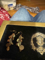 Dangle Earrings with Amber Resin Beads and Metal Discs