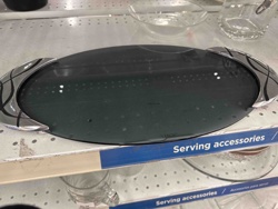 Art Deco Style Smoked Glass Oval Serving Tray with Chrome Accents