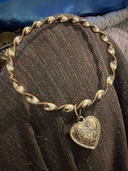 Vintage Avon Twisted Silver-Tone Bangle with Heart Charm
