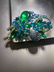 Vintage Green Rhinestone and Aurora Borealis Floral Brooch
