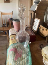 Antique Ribbed Glass Decanter with Teardrop Stopper