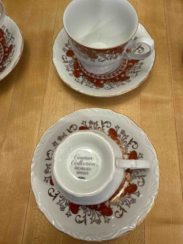Charter Collection 'Richelieu' Red/Rust Cups and Saucers Set