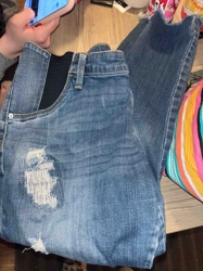 Distressed Maternity Skinny Jeans with Elastic Side Panels